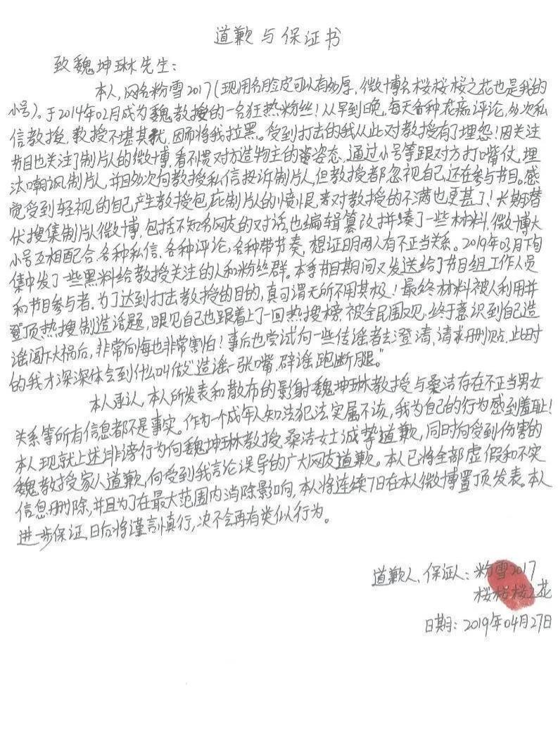 随后造谣的网友也向魏坤琳道歉。