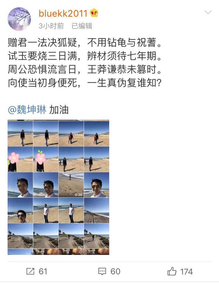 2019年4月,魏坤琳老婆在社交平台发文,为魏坤琳辟谣。