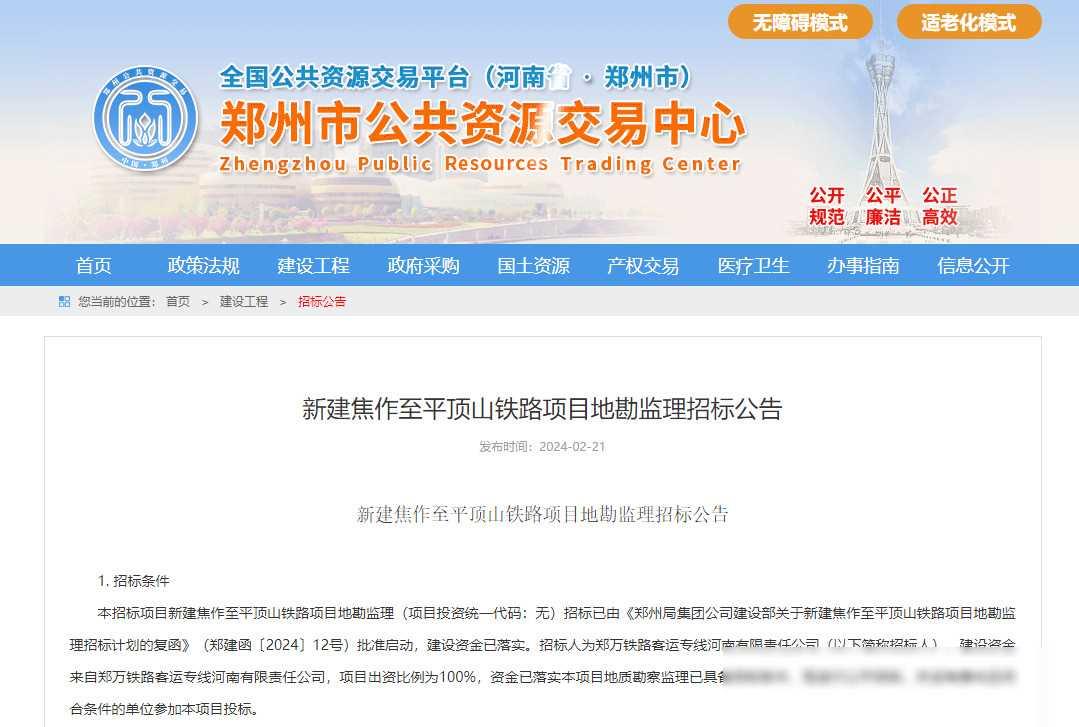 城市的未来藏在铁轨之间,而呼南高铁焦洛平段将是这座城市的新动脉。2024年2月21日,《新建焦作至平顶山铁路项目地勘监理招标公告》的发布,勾勒出了一幅新时代的城市画卷。本文将深入解读这一规划,揭示其中的城市发展密码。
