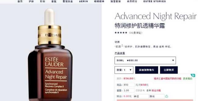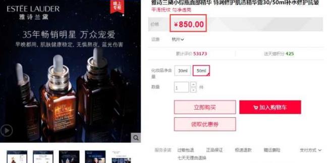 美国雅诗兰黛官网1.0盎司=68美金 1.7盎司=98美元(1盎司=30ml)