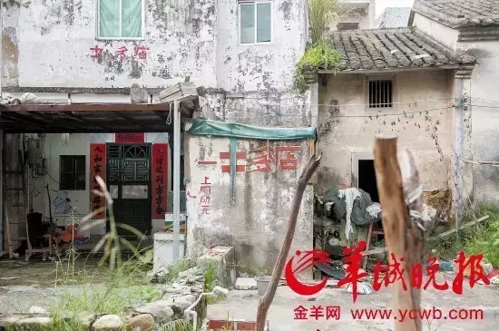 李屋村,一户门头上题着“九牧世居”的老宅子显得很大气,双扇木门紧闭,院子里遍生一人多高的野草。村里的两株龙眼树上果实累累,但旁边的房子早已拆成了瓦砾废墟,无人再去收摘。