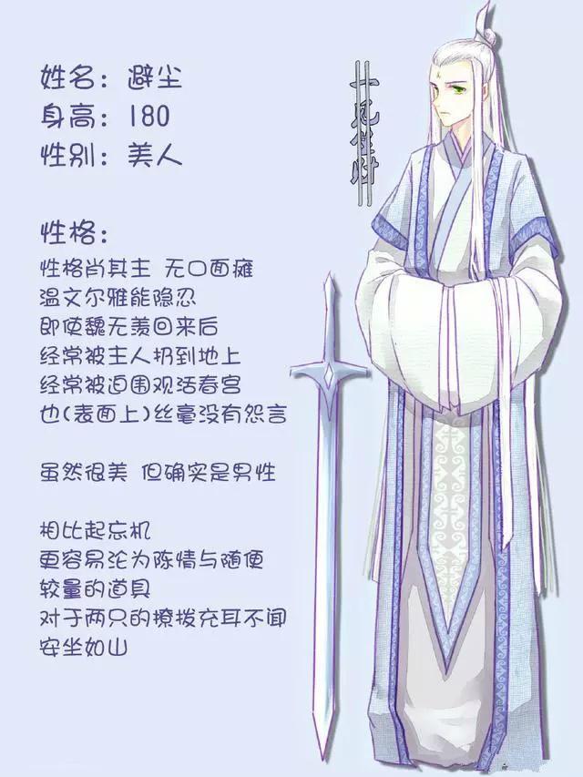 来,我们一起学避尘叫:天黑了~天亮了~天又黑了~天又亮了~最后献上避尘的尺寸图和拟人图,真是一把(一位)好剑(美人)呐!