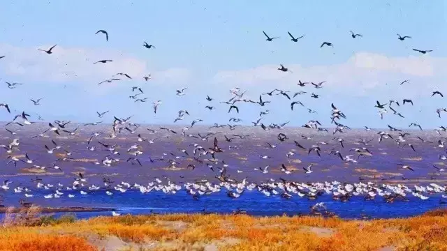 艾比湖是新疆第一大盐水湖,位于新疆博州精河县城,蒙古语称为“艾比淖尔”,意为“向阳之湖”。丰沛的水源使得这里成了候鸟的港湾,而且湖畔还生长着勿忘我、千里光、紫罗兰等芳草野花,美若仙境。