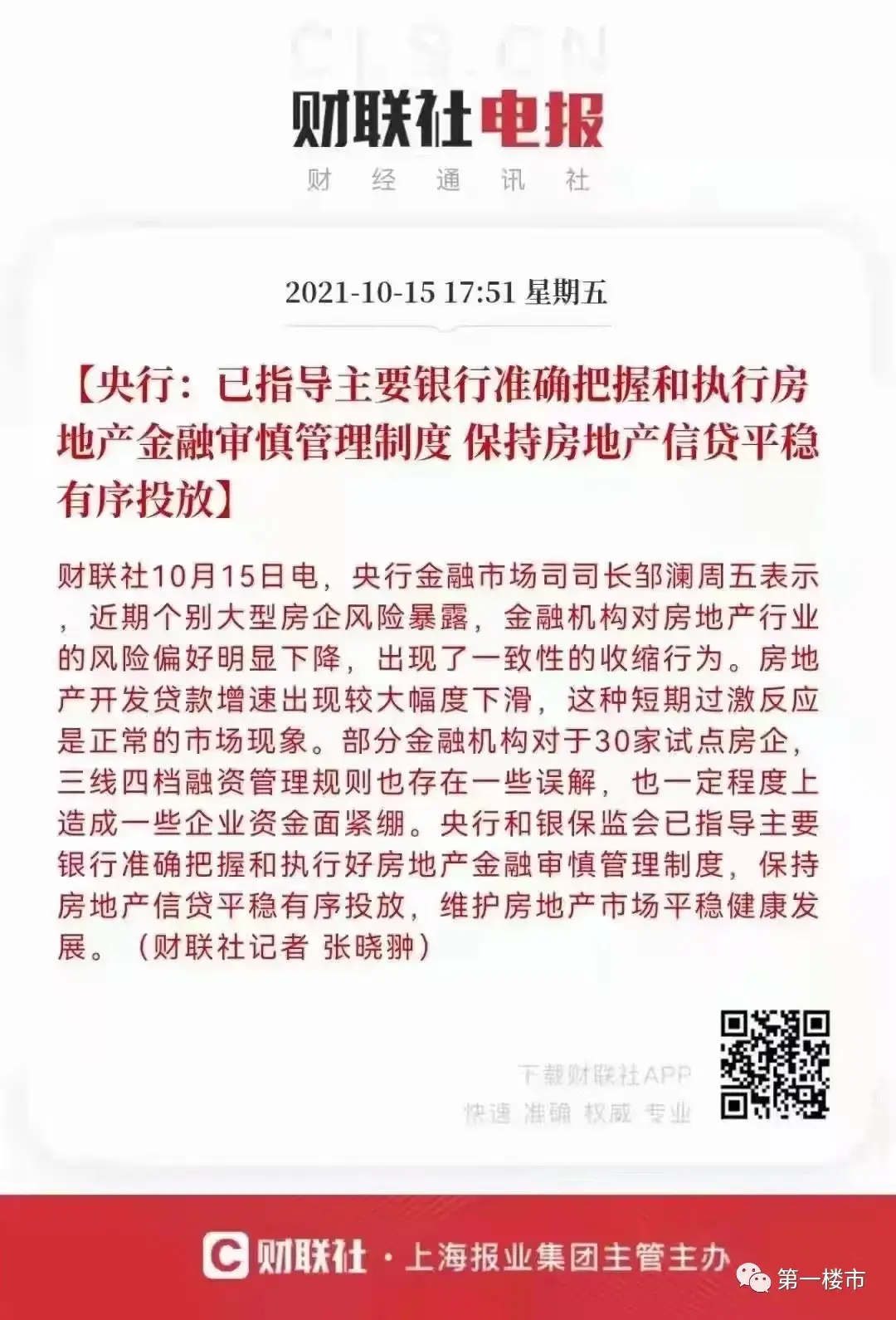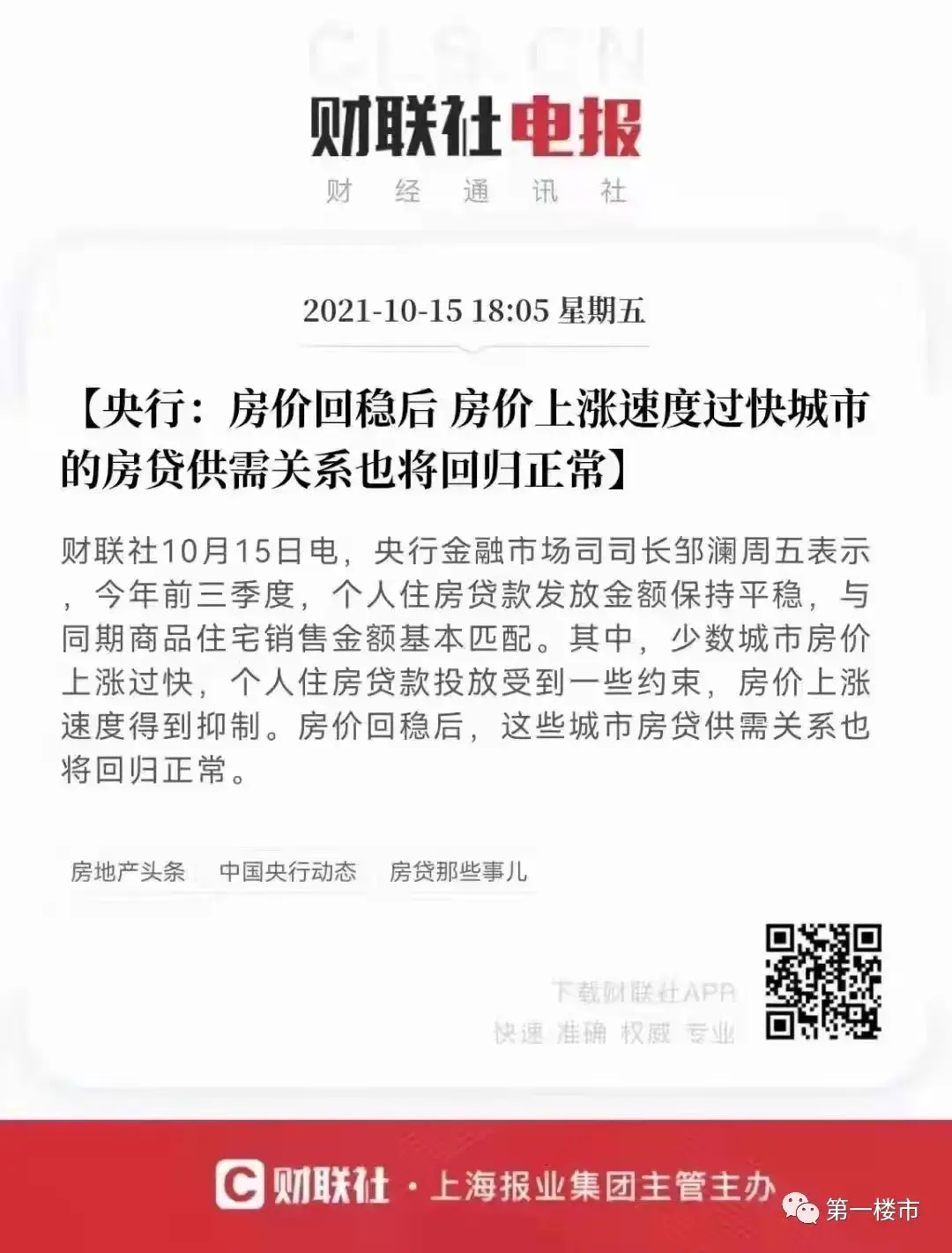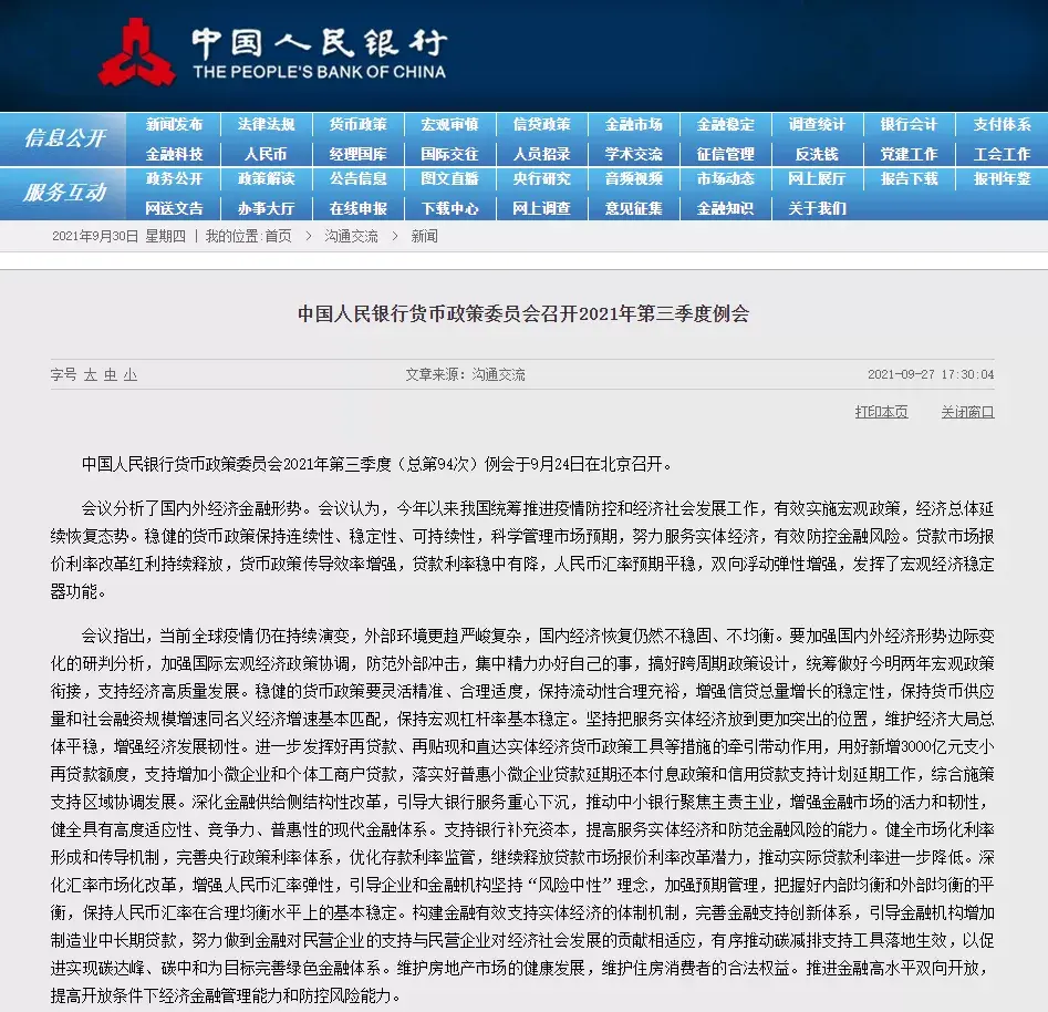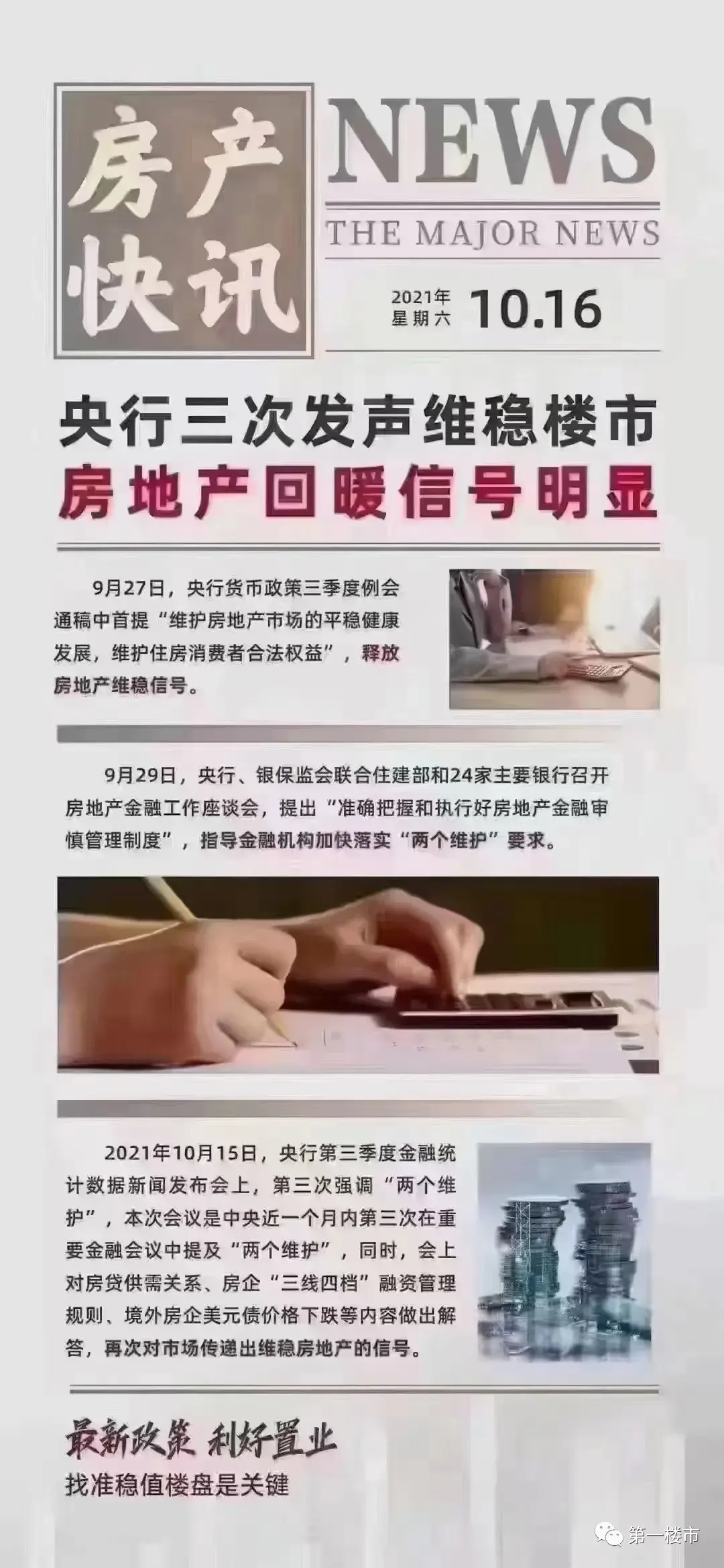 9月24日,央行提出;金融机构要配合相关部门和地方政府共同维护房地产市场的平稳发展,维护住房消费者合法权益。