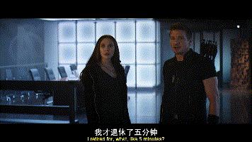 因为索科维亚协议美队与钢铁侠闹翻,各英雄开启了站队模式。退休的克林特·巴顿重返战场,听从美队的号召把猩红女巫从斯塔克大厦“解救”了出来,顺便还不忘吐槽一下: