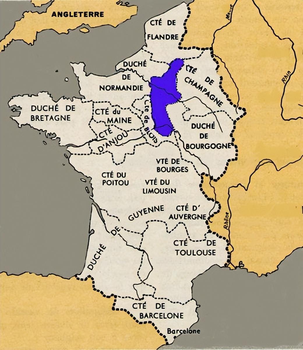 卡佩王朝初创之时,王室直接管辖的领地只有巴黎附近大约3万平方公里的土地,只占整个王国45万平方公里广袤领地的十五分之一左右。而与之相比,阿基坦、布列塔尼、图卢兹等诸侯领地却要大上很多,且各自为政,根本不把卡佩王室放在眼里。