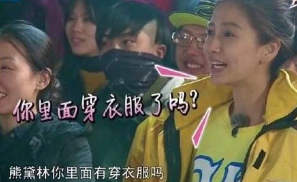 杨颖为了不丢失自己的面子,在第二环节开始的时候,她用开玩笑的语气问熊黛林里面有没有穿衣服,这让现场嘉宾都很惊讶,不过大家都以为她是开玩笑。