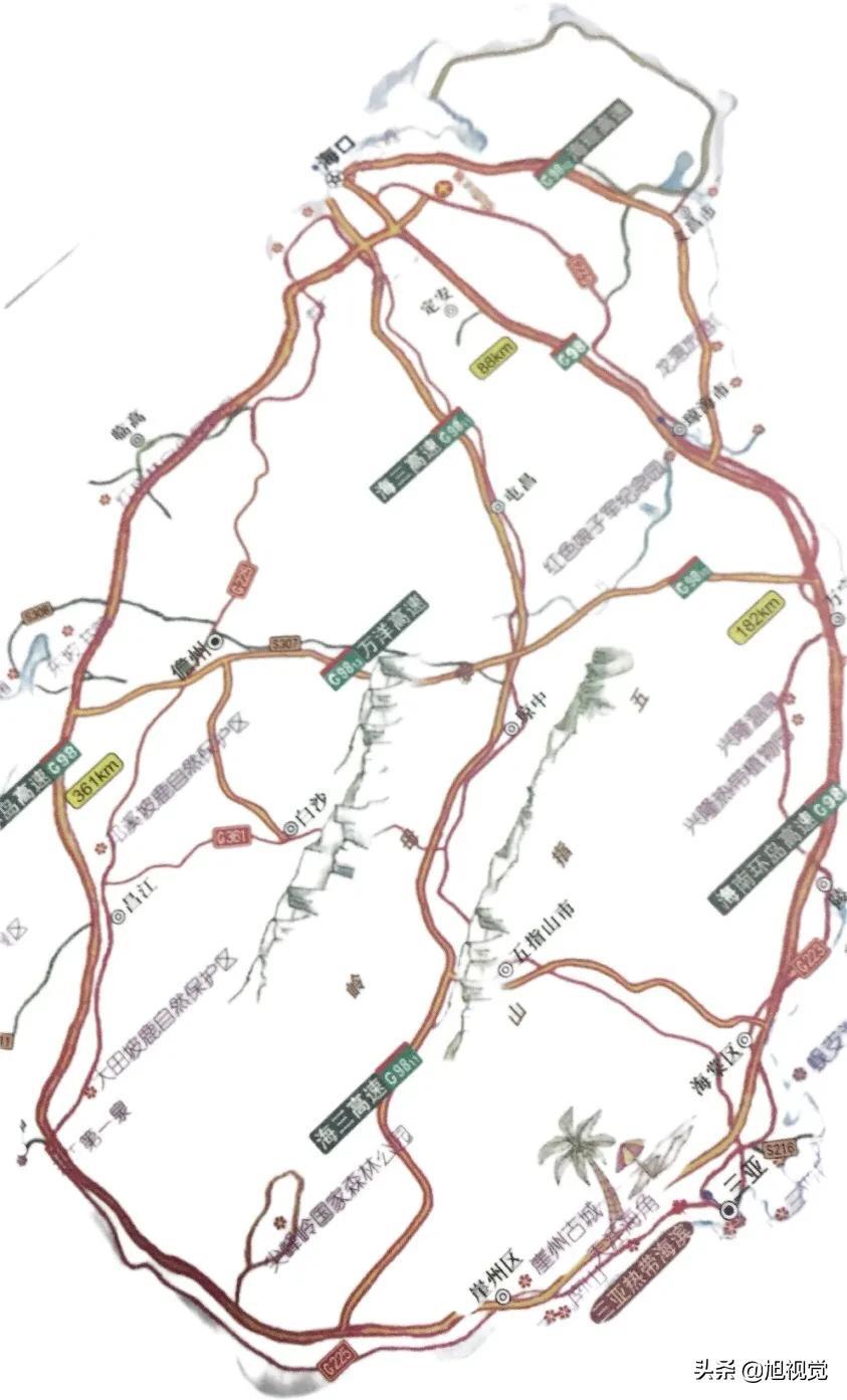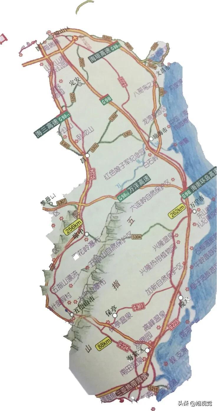 海岛森林风:海口-三亚(高速·262km) -五指山(G224·88km) -海口(G224·256km)