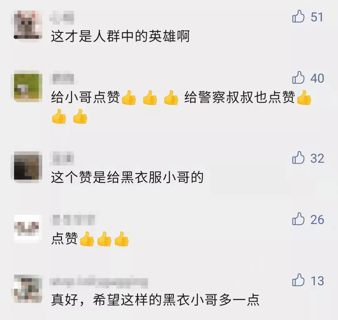 见义勇为的黑衣小哥表示了赞赏