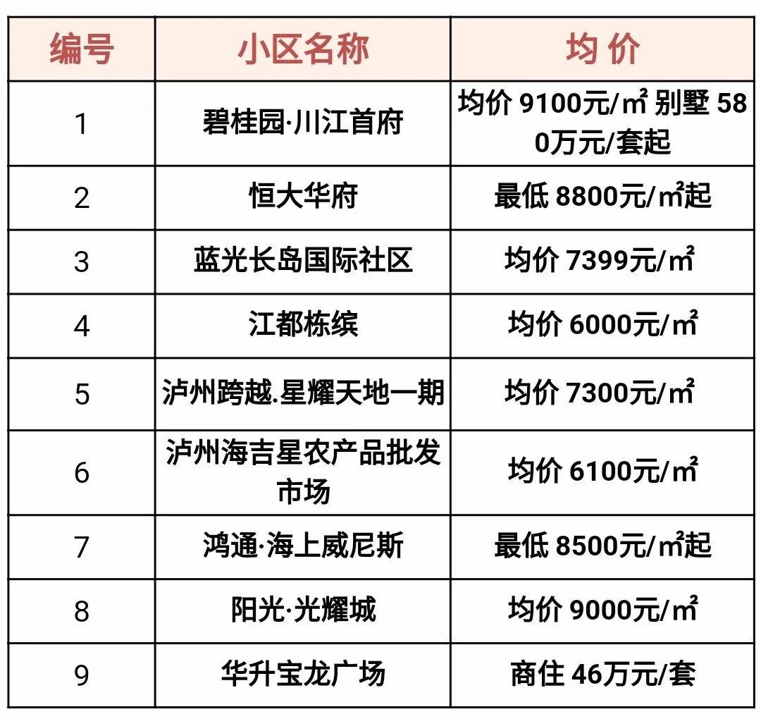 泸州各区县最新房价出炉!看看有你家小区吗?