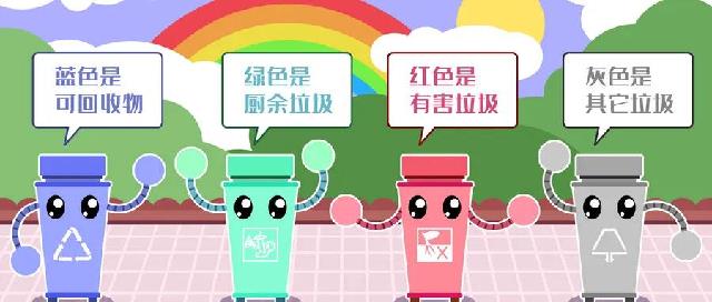 统一实行“可回收垃圾”“有害垃圾”“厨余垃圾”“其他垃圾 ”四分类标准,按照可回收物蓝色、有害垃圾红色、厨余垃圾绿色 、其他垃圾黑色的标准,统一垃圾袋、垃圾桶站、垃圾箱房颜色。