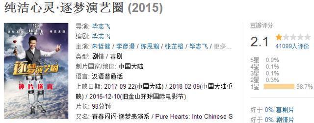 相比王宝强的坦诚与谦虚,本届金扫帚奖“最令人失望导演奖”的另一位获得者,《逐梦演艺圈》的导演毕志飞,显然没有王宝强的谦虚姿态。毕志飞一直都不觉得《逐梦演艺圈》是一部能让他获得“最令人失望导演奖”的电影,他觉得自己的电影甚至可以到好莱坞去“逐梦”,根本不是大家眼中的烂片。