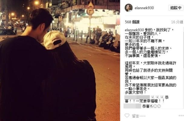不久后江若琳也公开,与对方深情表白:与你相识10年,不离不弃,一定要幸福哦!