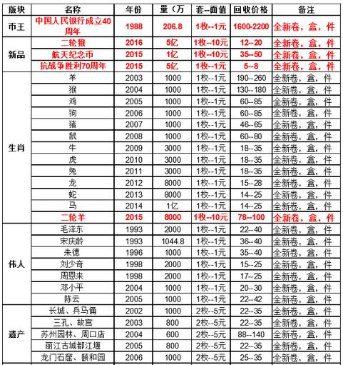 最新流通纪念币回收报价,最新纪念币回收价格参考表