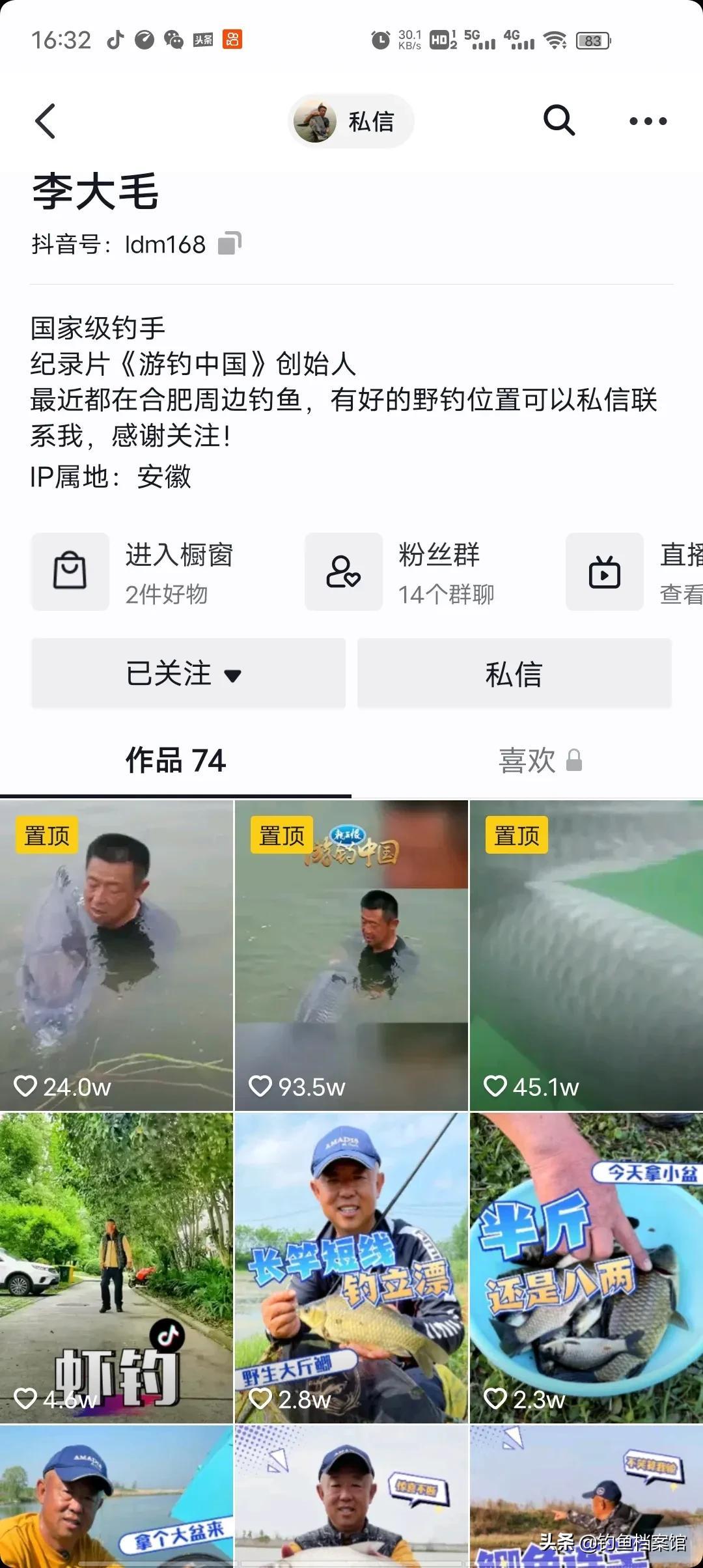 而钓友们在自媒体平台上的选择太多了,邓刚、刘志强大师们,哪个人的粉丝比大毛老师少呢?