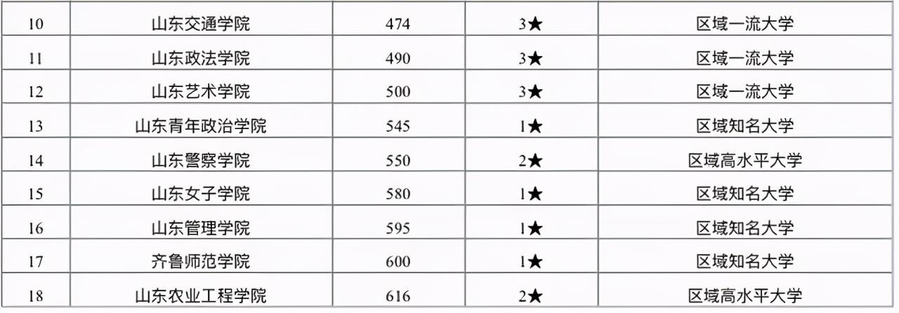 济南市最好大学排行榜第10位至第18位的高校依次为山东交通学院、山东政法学院、山东艺术学院、山东青年政治学院、山东警察学院、山东女子学院、山东管理学院、齐鲁师范学院、山东农业工程学院。