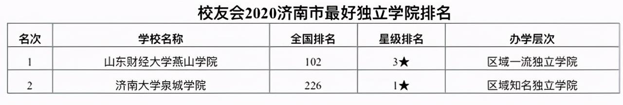 济南市最好独立学院排名依次为山东财经大学燕山学院、济南大学泉城学院。