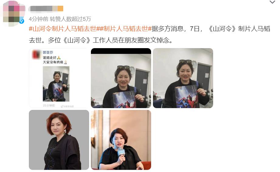 6月7日,据媒体报道,电视剧《山河令》的制片人马韬已经于今天中午去世,噩耗传出,许多网友和该剧的工作人员都纷纷发文悼念。