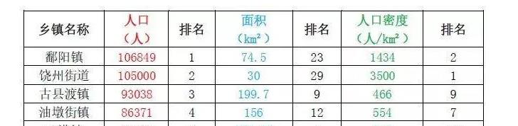 鄱阳县是江西省直管县, 古称番(pó)邑,饶州,汉时更名鄱阳县,因我国第一大淡水湖鄱阳湖而得名。鄱阳县总面积为4215平方公里(全省第二),2020年,第七次人口普查数据显示:鄱阳县人口1184097,相比2010年(1296756)减少了11万多,在上饶12个县市区中,信州、广丰、广信、横峰、万年、德兴的人口在增长,鄱阳县等六个县区人口在减少。那么鄱阳有多少个乡镇,哪个乡镇的密度最高?