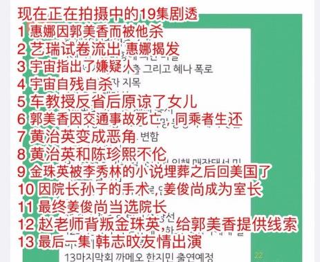 最近网络上放出了最新剧透,正在拍摄中的第19集的内容。最后一集还有韩志旼友情客串。