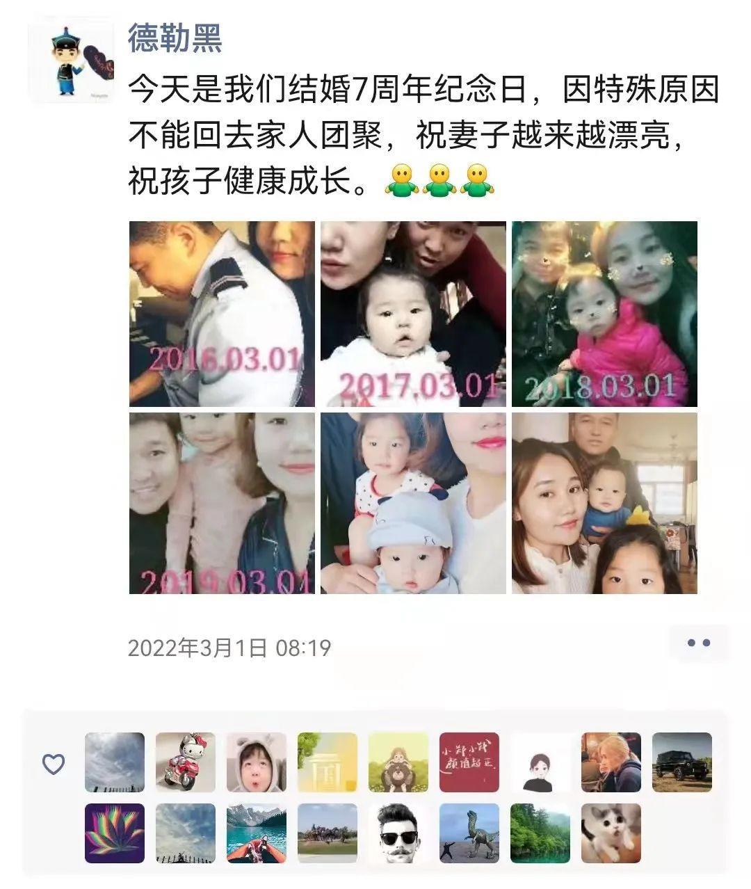 在家庭中,德勒黑是个有担当,感情细腻,对家人充满爱的好丈夫、好父亲。支援阿拉善疫情防控工作返回隔离时,正巧赶上儿子两周岁的生日,对儿子充满愧疚的他在微信朋友圈祝福儿子生日快乐。再度支援呼和浩特疫情防控工作期间,又赶上他与妻子结婚七周年的纪念日,远在千里的他却再一次不在家人的身边,不能和家人相聚庆祝,只能隔空表达自己对妻子和孩子的爱,他在微信朋友圈写下这样一段话:“祝妻子越来越漂亮,祝孩子健康成长”,还配上他和妻子、孩子的合照。两度参与异地抗疫,德勒黑的妻子一个人挑起家庭的重担,独自照顾两个孩子的生活起居,她却从来没有怨言,因为她知道丈夫在他乡抗疫不仅工作辛苦还带有危险性,她不能给丈夫增加一点负面情绪,只愿疫情早点过去,丈夫平安归来。