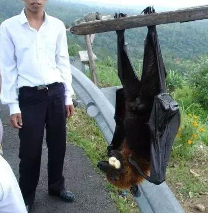 马来大狐蝠是世界上最大的蝙蝠。体长为20-25厘米,体重约为600-1100克,翼幅通常为150厘米,还好它们不是吸血蝙蝠,不然可有的受了。有一双大眼睛,较长的像犬科动物的口鼻部和长而尖的耳朵。