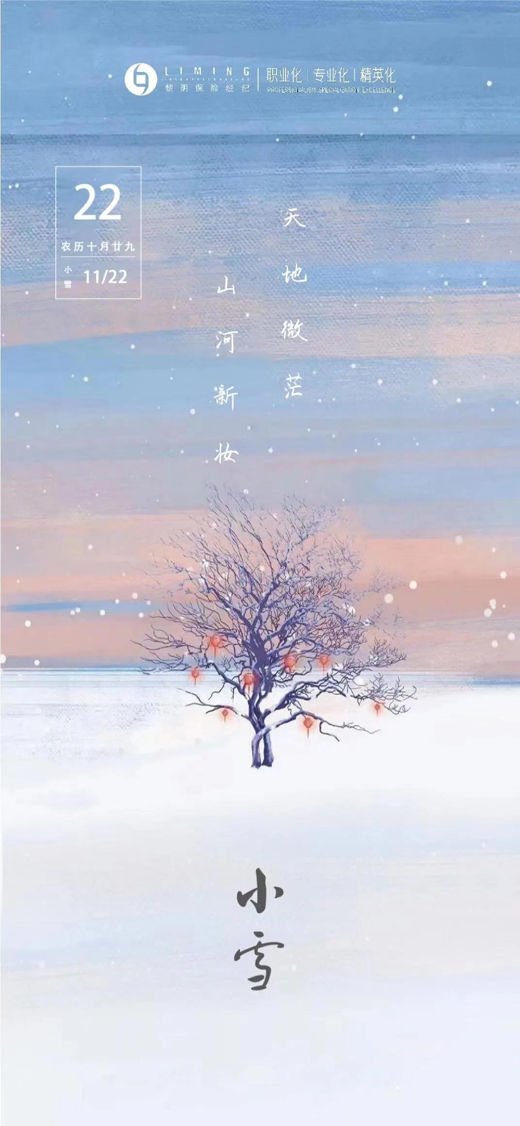 虽说物候意义上的小雪节气并不等同于天气意义上的小雪,但是每年至此,总是期盼着雪花飘落,“小雪雪满天”的迷人景象。多期待会有人这样播报天气: