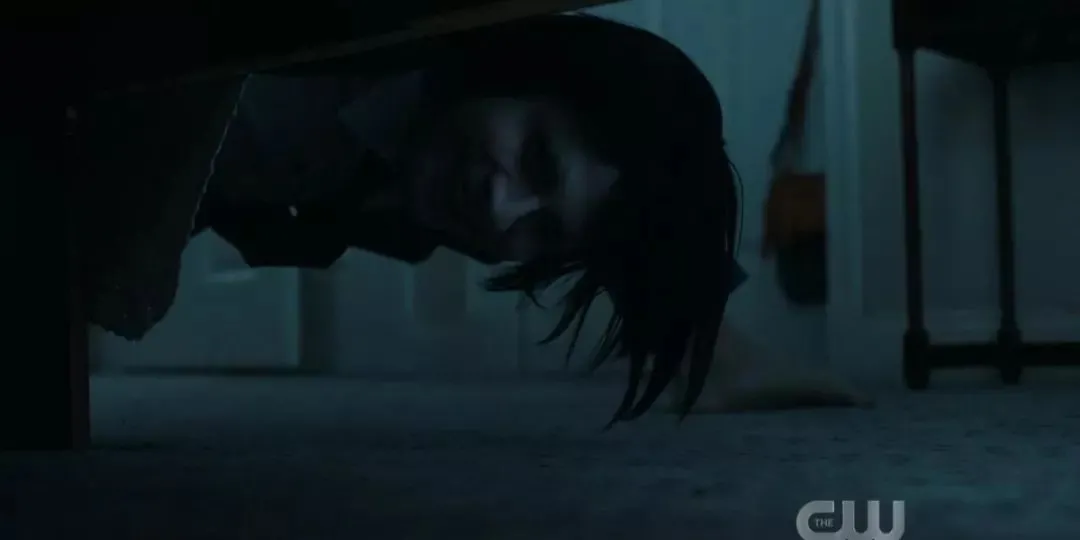 之前准备进房间找安吉拉的孩子看到这一幕,吓得大叫还躲在了床底下。
