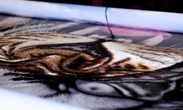 湘绣是中国四大名绣之一。湘绣艺术特色,主要表现为形象生动、逼真,质感强烈,它是以画稿为蓝本,“以针代笔”,“以线晕色”,在刻意追求画稿原貌的基础上,进行艺术再创造。故其独特技艺,尽在“施针用线”之中。