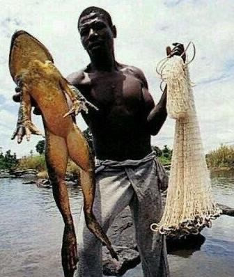 世界上最大的青蛙来自于非洲。非洲这名男子捕获时这只青蛙重达三公斤,长度达33厘米。