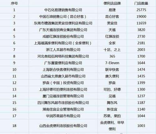 中国连锁便利店排行榜(前二十):