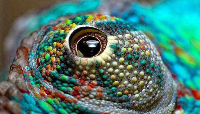 变色龙的眼睛是不分上、下眼睑的,他们的大小只能容下瞳孔,视力极其强大,一双眼睛能够同时看到不同方向的两个物体,所以他们在捕捉昆虫方面他们占据了巨大的优势。