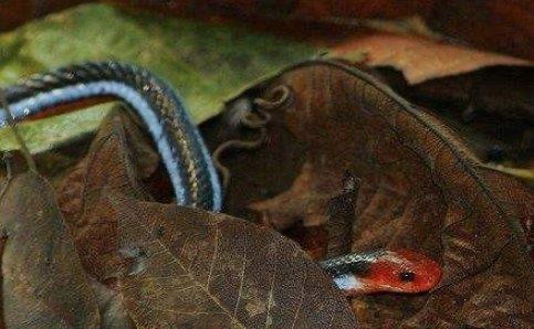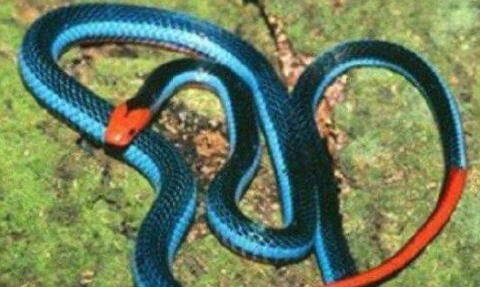 蓝长腺珊瑚蛇背面紫褐色,有黑色横带,背鳞光滑,和钴蓝箭毒蛙一样全身以蓝色为主,它的头部和尾部是火红色。鳞片整齐清晰,看上去美观高贵,不过越是漂亮的蛇毒性越大。它们喜欢在半夜出来溜达,不过它们有时也会在清晨的森林小径上“伸懒腰”。