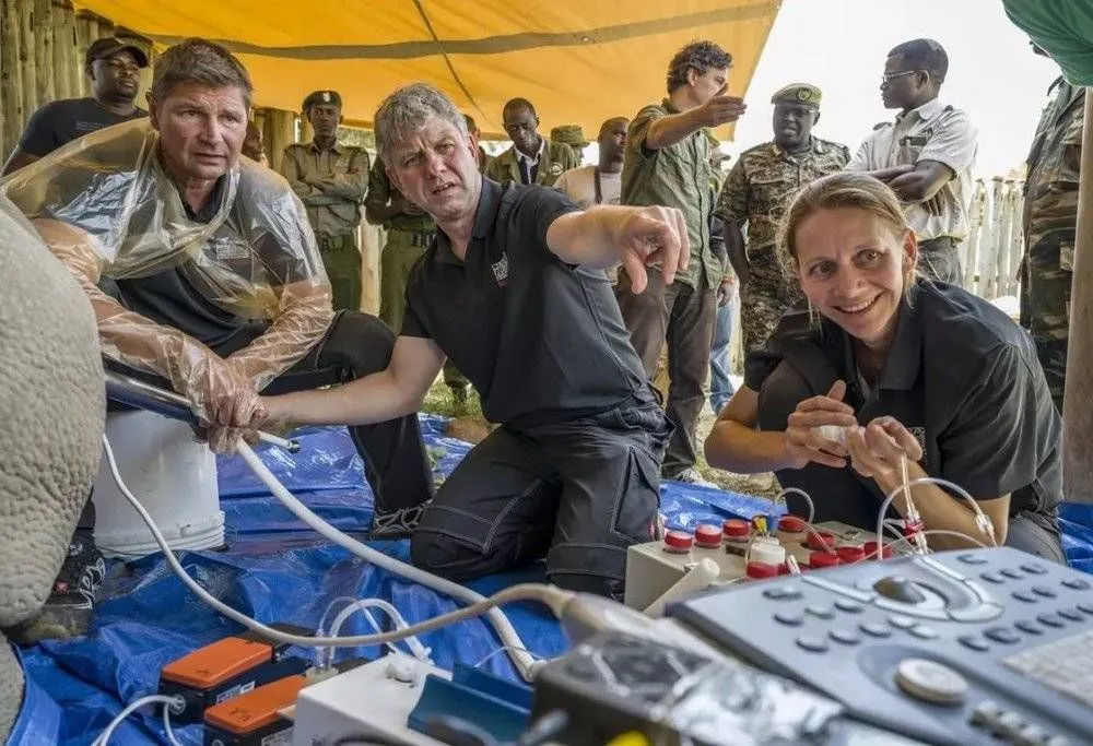 国际兽医团队从24小时警卫身边接过了Najin和Fatu,用精准的麻醉让她们昏迷了两个小时,首次提取出了北白犀卵细胞。