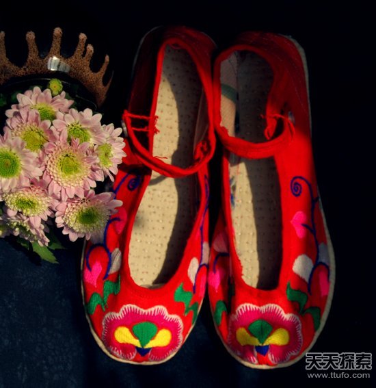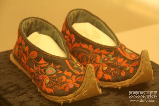 鞋在古人特别是古代女性心目中,一直与性、婚姻联结在一起。现今被视为“中国鞋”的绣花鞋,在古代常被作为一种定情、吉祥之物来使用,在唐宋时已成风俗。