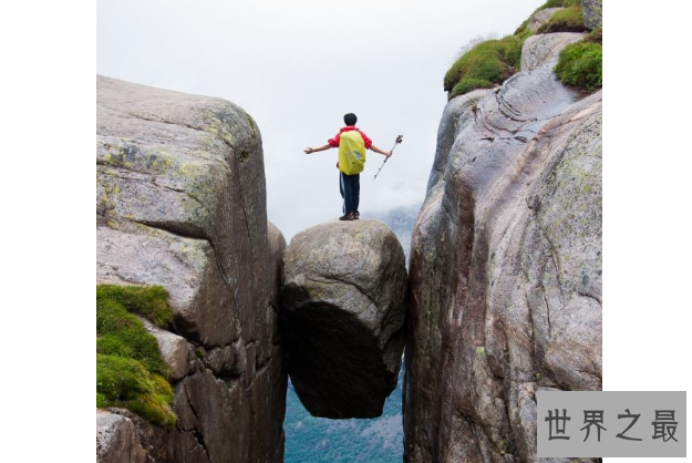 详细介绍:夹缝巨石位于挪威境内,这快石头叫做Kjeragbolten巨石,被夹在海拔1000米的悬崖中间,至今都没有人研究出这个巨石是如何到这个位置的。