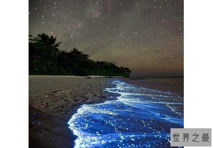 详细介绍:荧光海滩位于马尔代夫的Vaadhoo岛,据称是因为海水中的浮游生物所形成,它们想细胞中有一种非常特殊的物质。