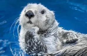 其实和水獭一样,海獭的外形也是非常纤细修长的,它们的体型不大,体长普遍只有13-15厘米,算是目前为止最小的海洋哺乳类,它们的身体呈现流线型,脑袋非常的短,有点类似鼬科动物,但是尾巴极宽,就像桨一样能在水中助力它游行,而且它最为特别的还是脚上长蹼,并且整体呈现鱼鳍状,而这些都为它在大海中的生活提供了非常有效的作用。
