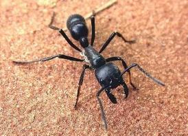 公牛蚁因为体型大,所以不想其他蚂蚁一样群体觅食,它们一般是单个去捕食,而且它还有锋利的上颚和毒刺,所以可以轻松的应对小型的昆虫,甚至是黄蜂,它们也毫不畏惧,人被它们刺到之后,疼痛会持续几天,所以一般人很少去招惹它们...