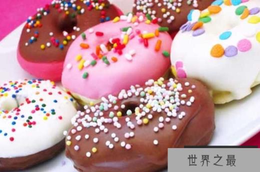 甜甜圈是垃圾食品中最受欢迎的,每一个小孩都无法拒绝甜甜圈的诱惑。然而一个小甜甜圈含有约19克糖,340卡路里和19克脂肪,容易造成肥胖。