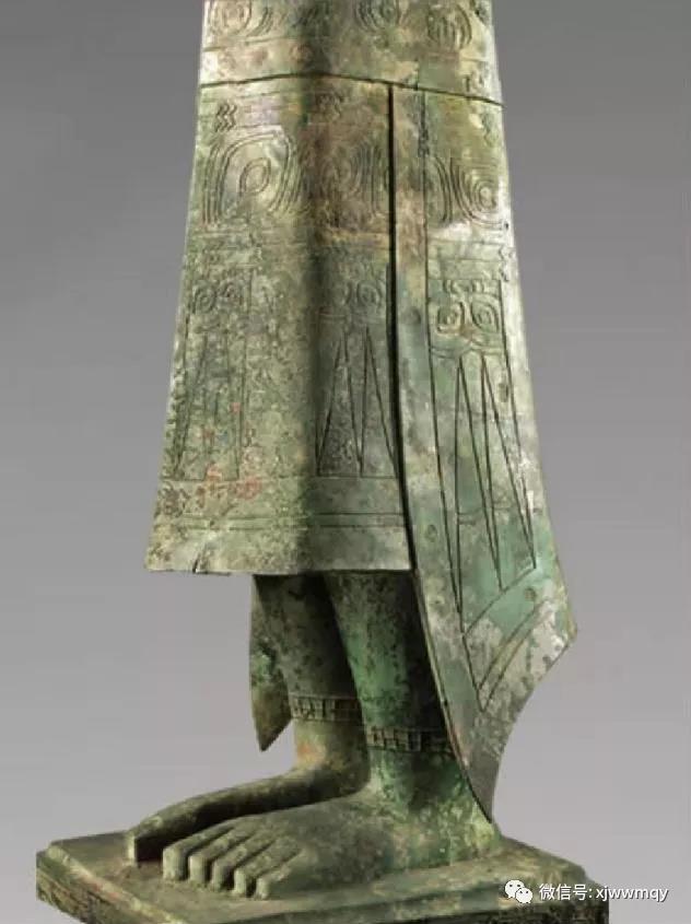 青铜神像的赤脚,代表着移动方式与常人不一样,它是在空中飞,而不是在地上走,既然脚不着地,自然就不需要鞋子。