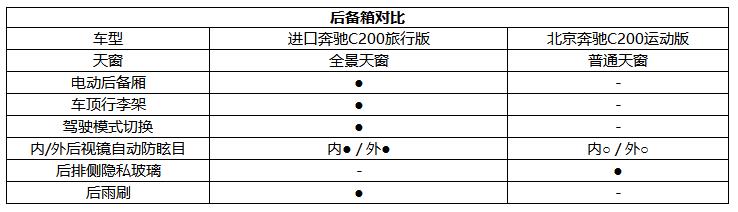 而在具体的配置层面,两款车型的基础配置都不错,全LED大灯、泊车雷达、7英寸中控屏幕、皮质座椅等均有配备,但C200旅行版多出了全景天窗、电动后备箱、驾驶模式选项、后视镜自动防炫目等,这些配置在7.1万元的巨大差价面前显得太无力,也因此进口身份的旅行车性价比远远不如国产的三厢版本。