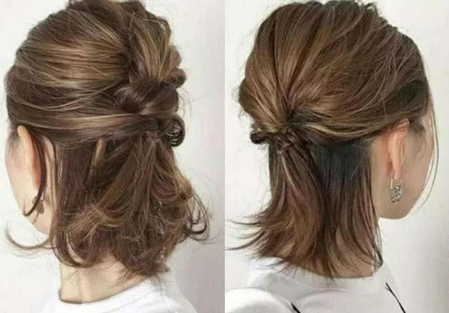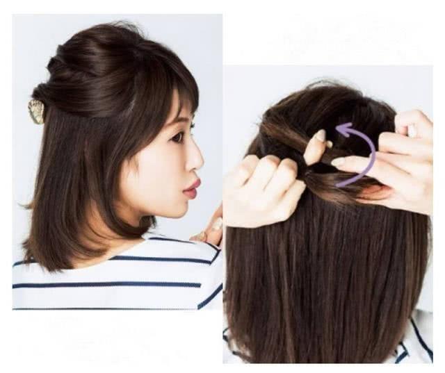 半扎是齐肩发最常用的造型方法,利用侧区和顶部头发的长度扎在后脑部位, 或变法或剪短的马尾,都能获得不错的造型效果,这种造型方法让发型更具层次高和立体感,顶部大都采用松散的造型技巧,完全符合现代人的审美,如果这种发型按照传统的贴头皮紧紧的扎法,瞬间老气横秋。