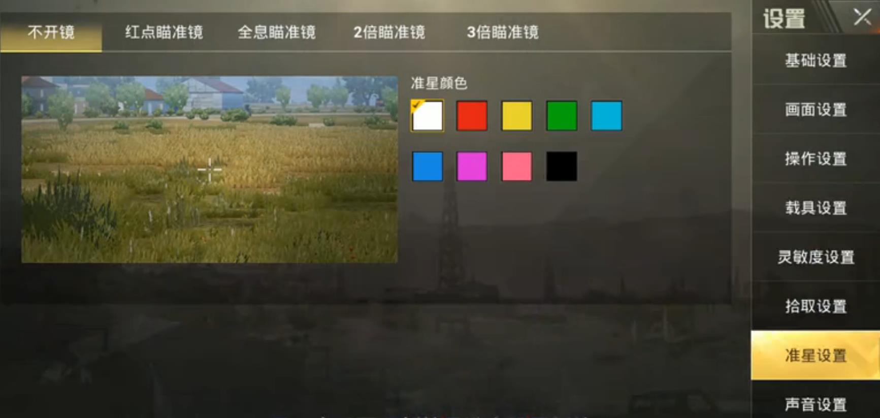 2、想必大家都遇到过找不到准心的时候吧,在一些特定环境下,准心有时候会融入环境中,小伙伴们其实可以通过游戏设置改变准心颜色哦~在准心设置中可以改变准心颜色,不开镜的准心有7种颜色可供选择,倍镜也有两种颜色可供选择。