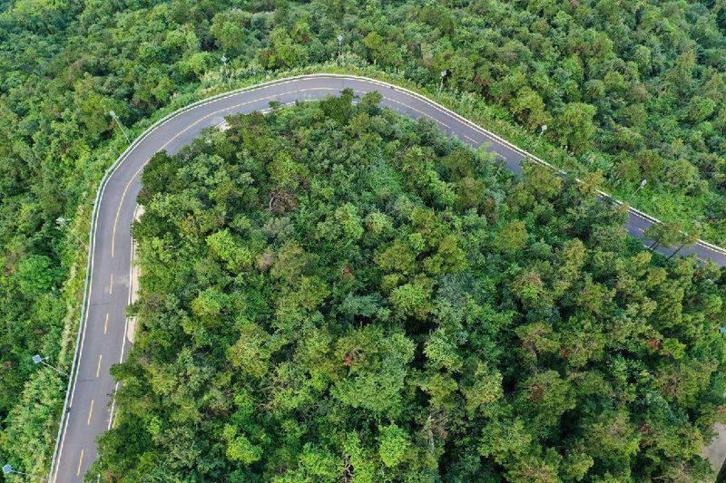 图为双峰山森林航拍图(双峰 摄)