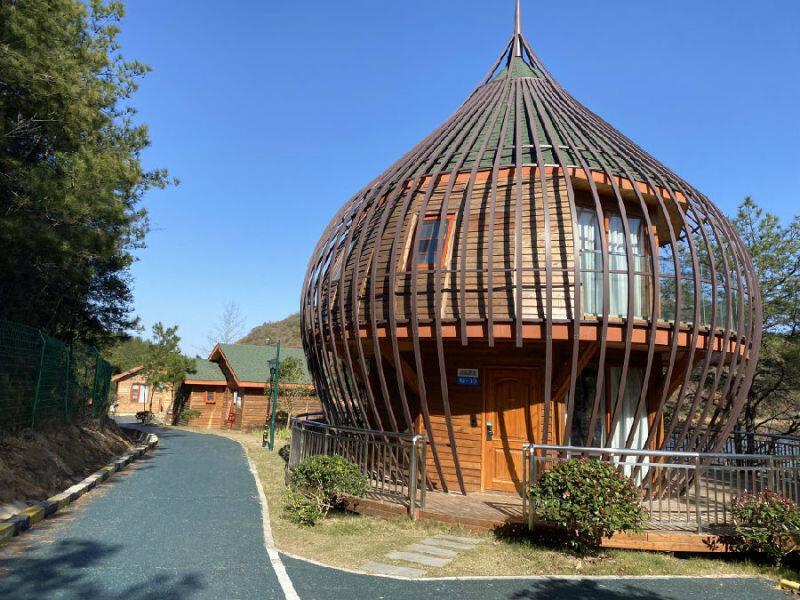 图为双峰山途居露营地的松果木屋(余惠玲 摄)
