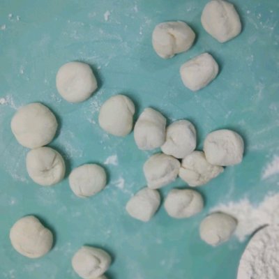 1、400克面粉加2克盐,凉水和面,活成软硬适中的面团盖上湿布,醒面!