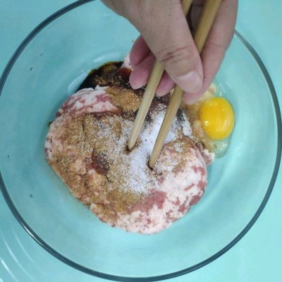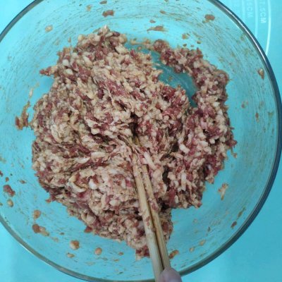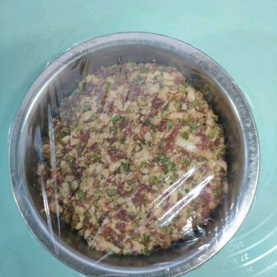 9、拌好的肉馅,敷保鲜膜,冰箱冷藏一会