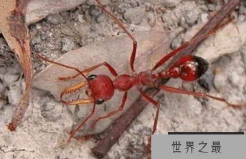 世界上最大的蚂蚁有3.7厘米,这种世界上最大的蚂蚁叫做公牛蚁。他的体型是普通蚂蚁的5倍左右,看起来像一只蟑螂一样,堪称蚂蚁界中的巨无霸,上颚部分占据了身体的绝大部分位置,让体重看起来并没有那么的笨重,我国境内是没有公牛蚁的存在,他们主要是生活在澳洲昆士兰和新南威尔士北部地区。