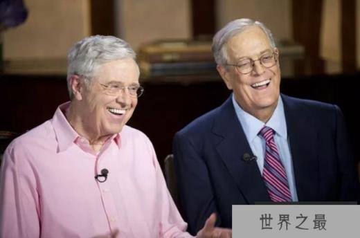 查尔斯和大卫·科赫这对兄弟每人拥有高达396亿美元的净资产,他们是著名的跨国企业科赫工业的主要股东。这个跨国企业主要涉及石油和化学技术,在全世界都享有盛名。
